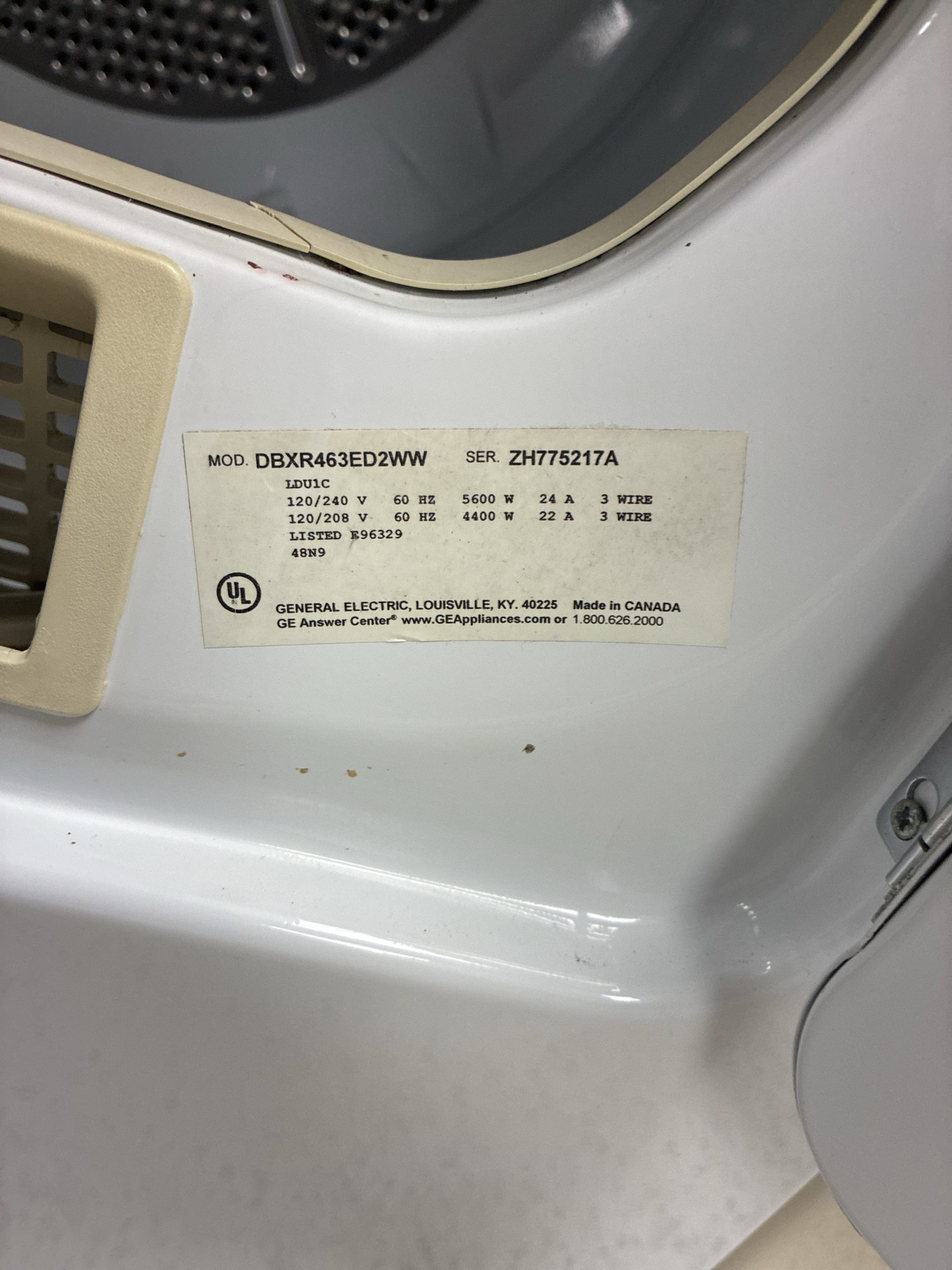 Dryer GE front load 27 by 36 mol-DBXR463ED2WW